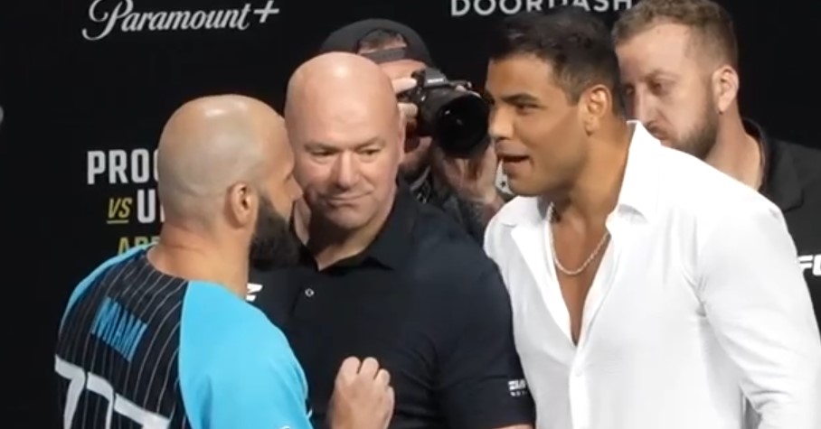 Официальная пресс-конференция перед турниром UFC 327 в Майами прошла максимально напряженно. Десять участников основного карда ответили на вопросы журналистов и встретились лицом к лицу. Традиционные битвы взглядов едва не переросли в потасовки — Дане Уайту пришлось дважды лично разнимать атлетов.